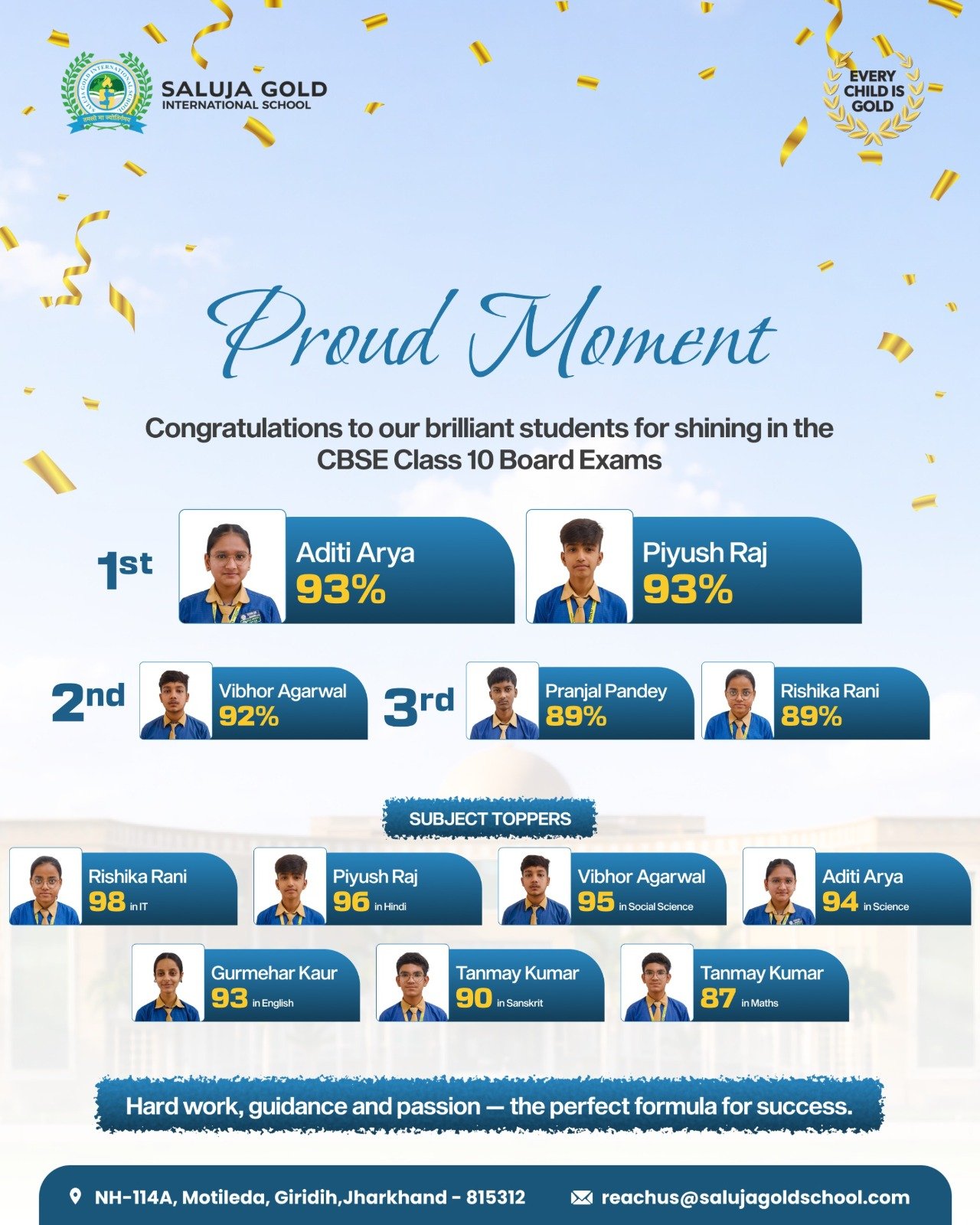 For excellence both in classroom and beyond gift your child an opportunity to study in Saluja Gold International School which is the best Boarding School in Giridih, Jharkhand. This well known English medium school in Jharkhand aims to train the students to be future ready and equipped. The students are exposed to experiential way of learning in order to keep them abreast with real world scenario. Saluja Gold International School, Giridih is a CBSE Board School in Jharkhand which provides the most outstanding hostel facility. It has classes from Pre-Nursery to Grade XII.